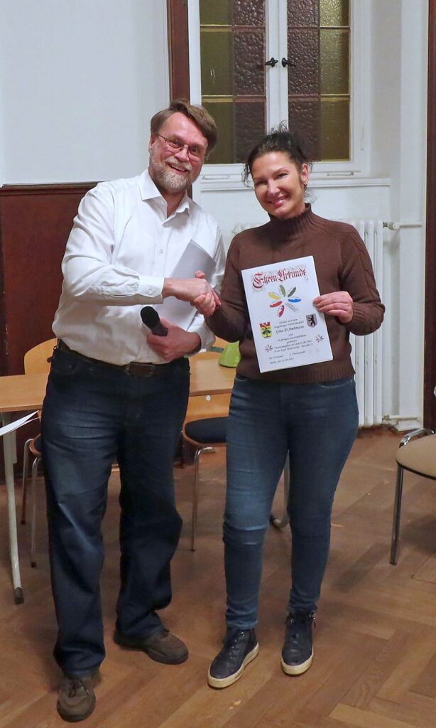 Aus Anlass der Hauptversammlung am 20. März 2026 wurde der Gartenfreundin Gina D`Ambruoso die Ehren-Urkunde zum 30. Gartenjubiläum im Abschnitt Weinviertel überreicht.